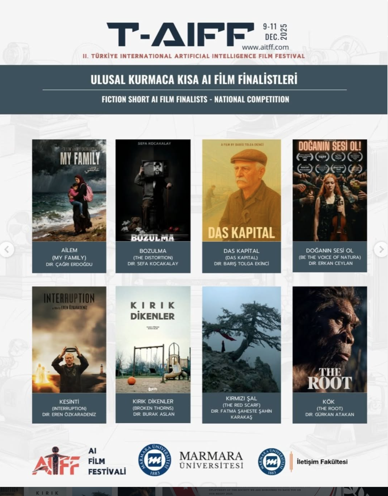 Yapay zekay araçları ile oluşturulan ilk AI Kısa filmim Das Kapital (2025) II. Türkiye Uluslararası Yapay Zeka Film Festivali'nde Finalde yarışıyor.